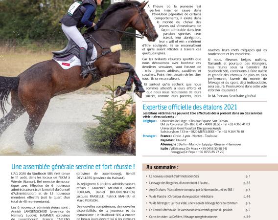 Le Bulletin d’Information de septembre 2020 du Studbook SBS, désormais intitulé « Le Cheval de Sport Belge », vient de sortir des rotatives. Il s’agit...